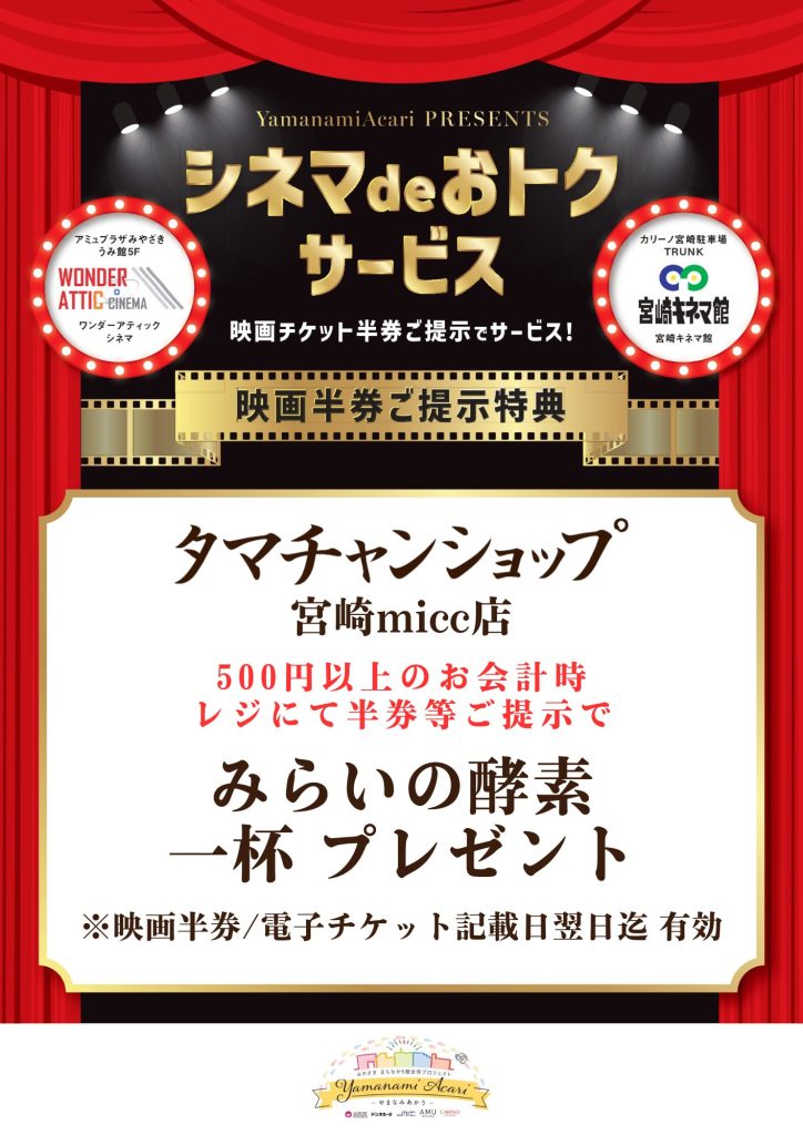 当日もしくは前日の映画チケットの半券などをご提示いただくと